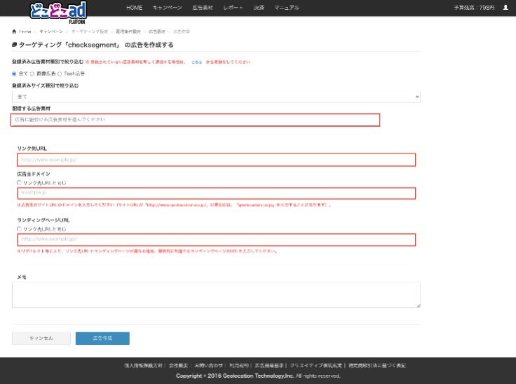 • メモ: 広告に関するメモを記載できます。入力は任意となります。