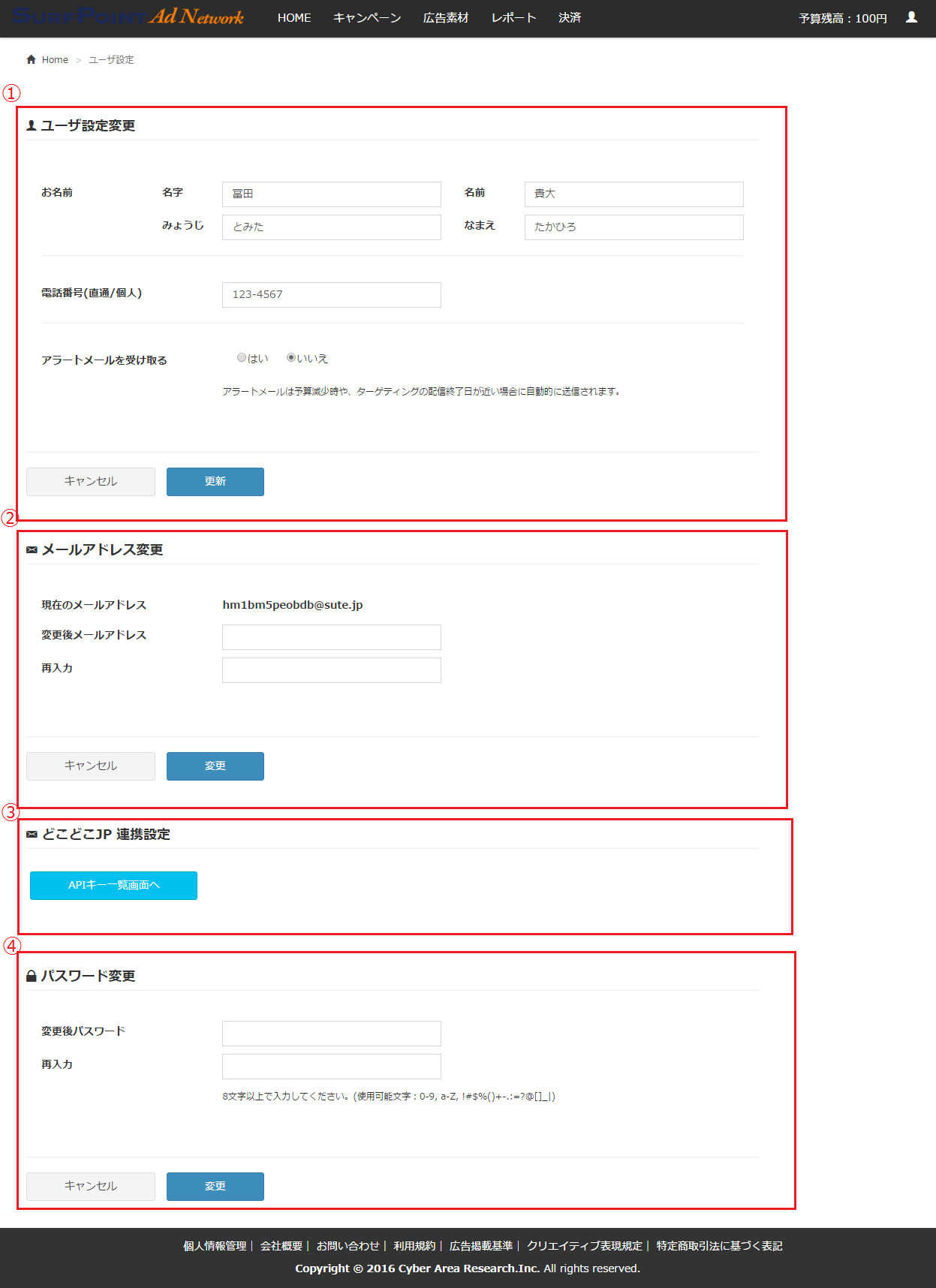 | − | + | [[HOME画面]]「設定変更」 » '''ユーザ設定画面''' | |