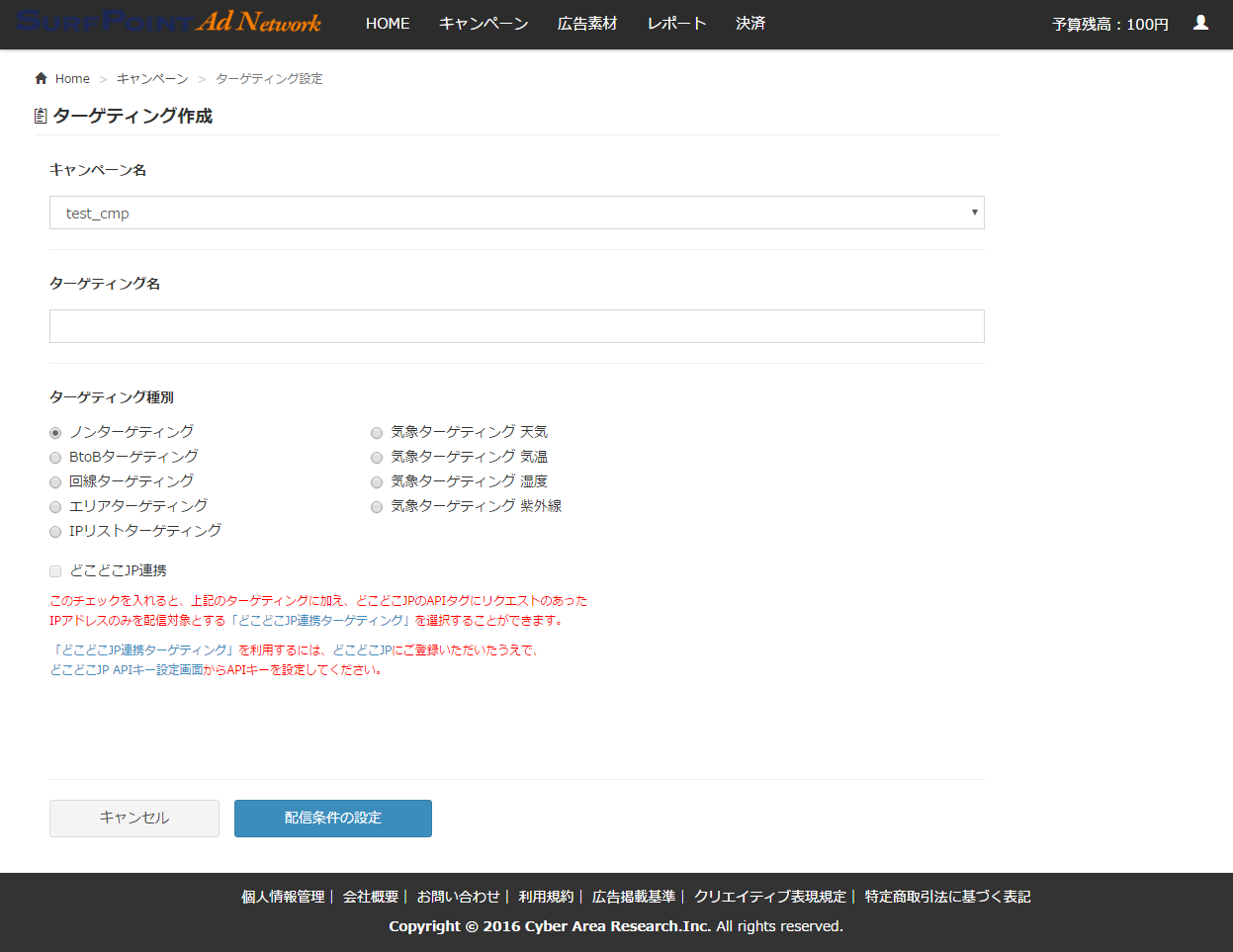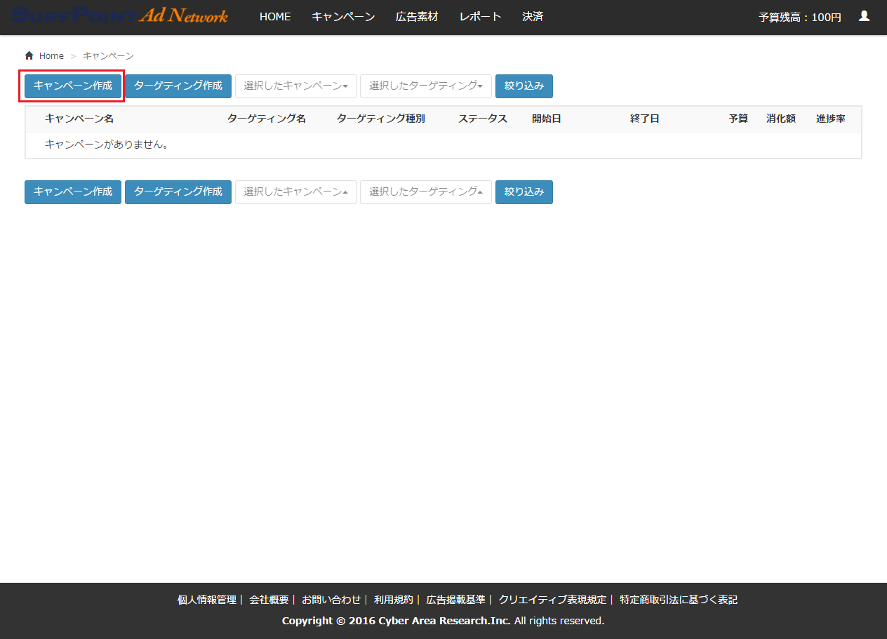 4. 問題が無ければ、ターゲティング作成画面に移動します。以上でキャンペーンの作成作業は完了です。