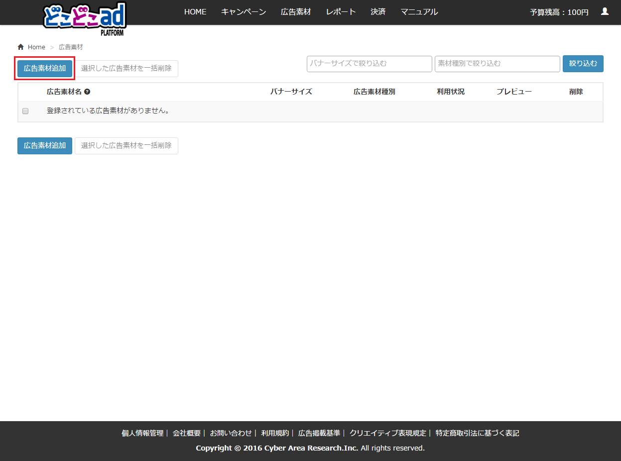 広告素材を追加するまでの操作手順をご説明いたします。