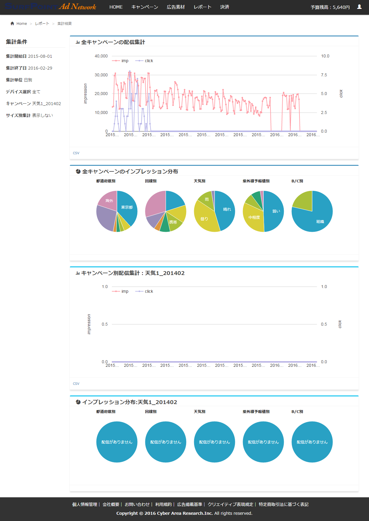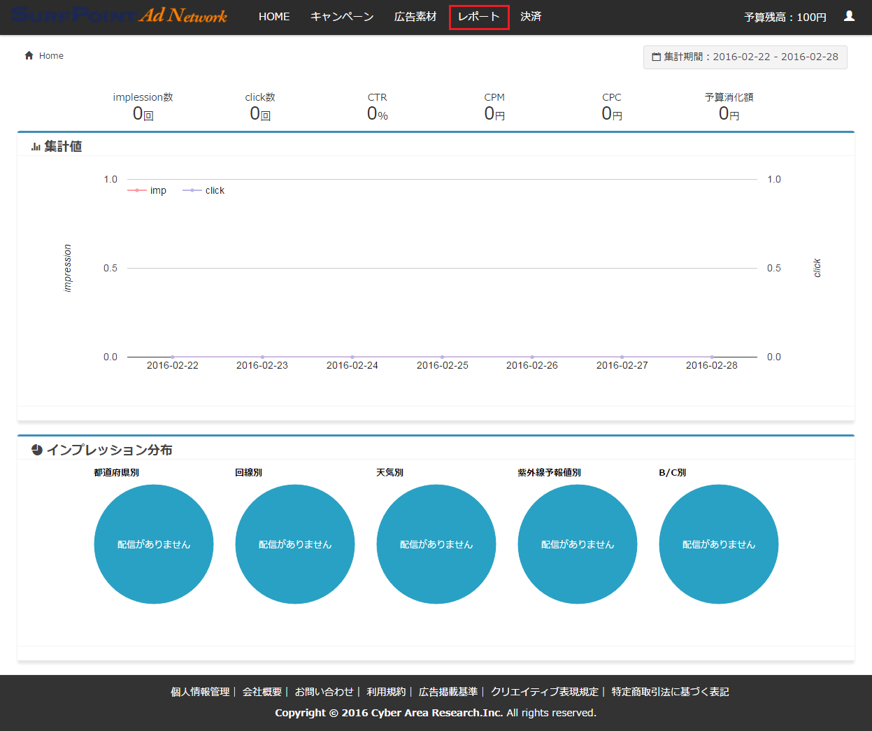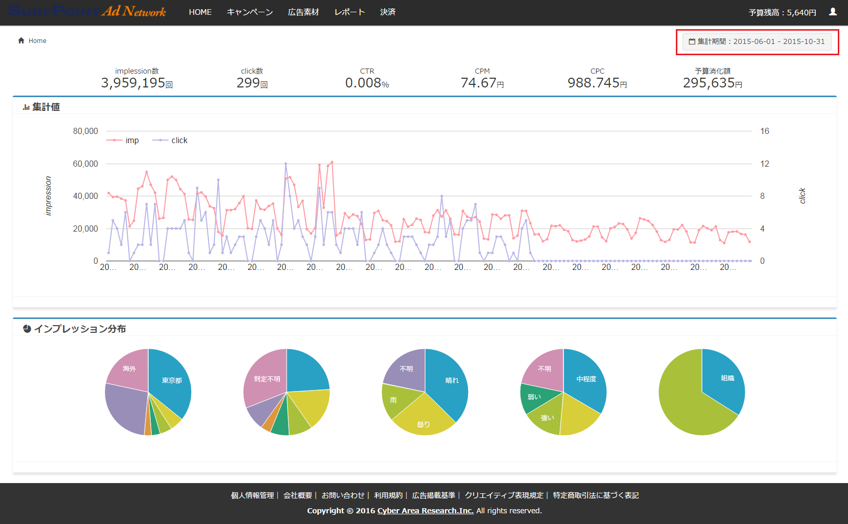 • 集計単位: 集計で利用する単位を選択できます。選択した単位は、インプレッション数と広告のクリック数の推移を集計する際に利用されます。